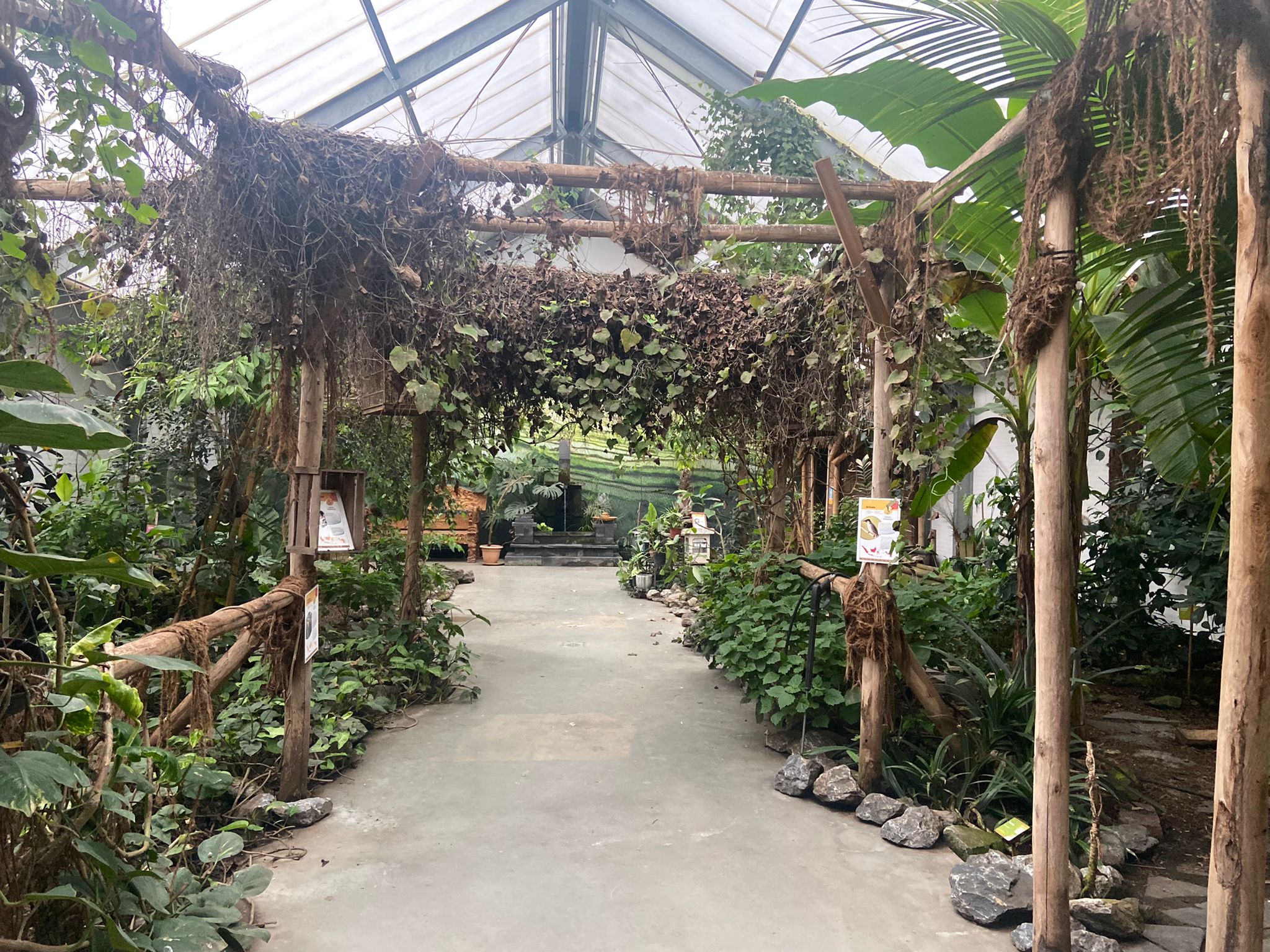 Selain itu ada pula kebun tertutup dengan tanaman, pohon dan burung dari daerah tropis.