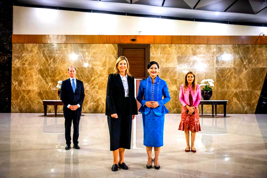 Begitu pintu pesawat terbuka, penyambutan berlangsung hangat. Friderica Widyasari Dewi, anggota Dewan Komisioner OJK untuk Edukasi dan Perlindungan Konsumen, berdiri berdampingan dengan Marc Gerritsen, Duta Besar Kerajaan Belanda untuk Indonesia, Timor-Leste, dan ASEAN, serta Gita Sabharwal, UN Resident Coordinator di Indonesia. Ketiganya menyambut Ratu Máxima yang tiba dengan senyum lebar, suasana yang terekam dalam foto resmi UNSGSA karya Patrick van Katwijk.