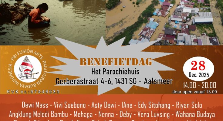 Aalsmeer, Kabarbelanda.com – Paguyuban Budaya Indonesia (PBI) Fusion Arts di Belanda akan menggelar acara penggalangan dana bertajuk “Benefietdag – Help Sumatra 2025!” guna membantu para korban banjir besar yang melanda sejumlah wilayah di Sumatra pada akhir November 2025.